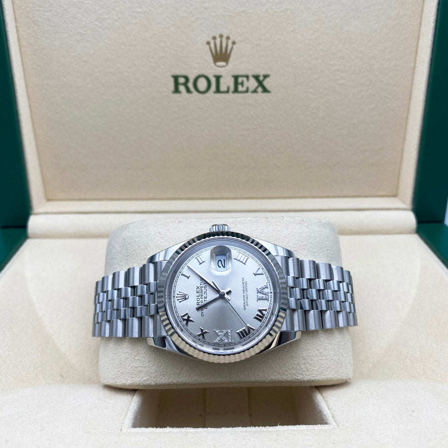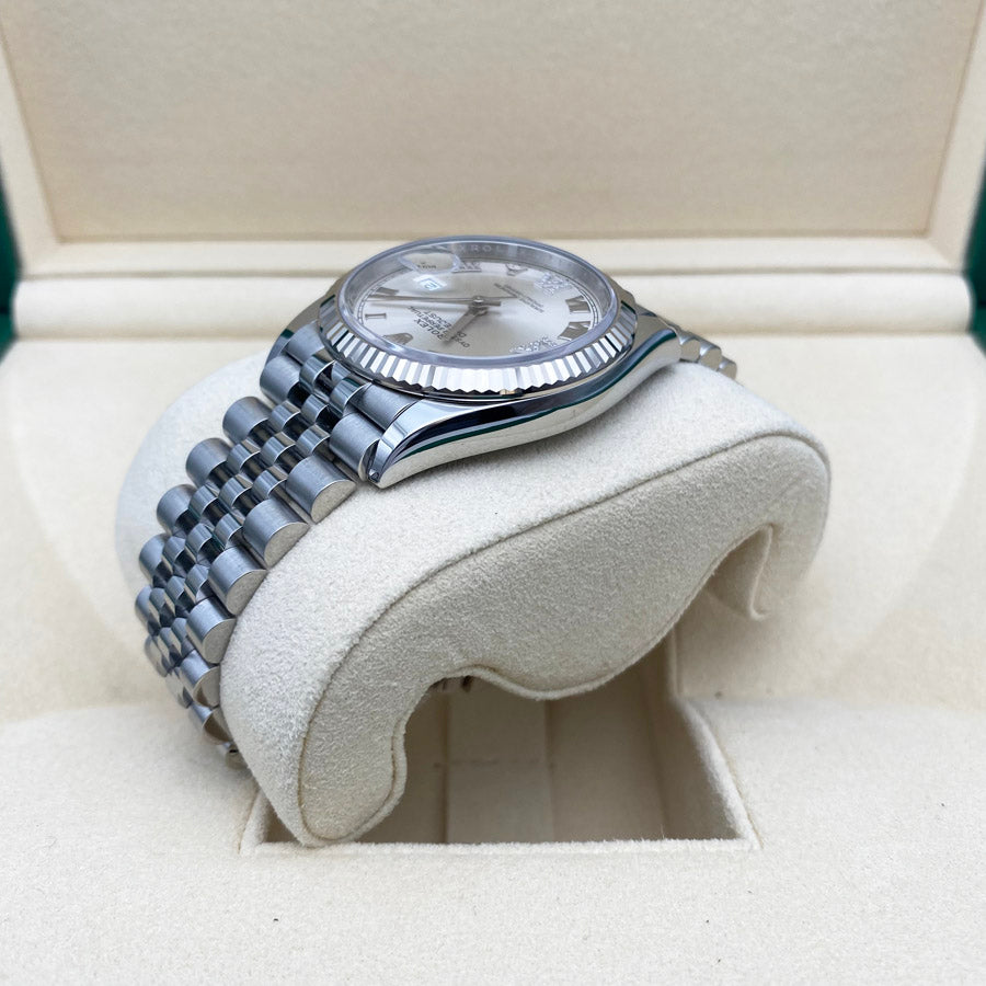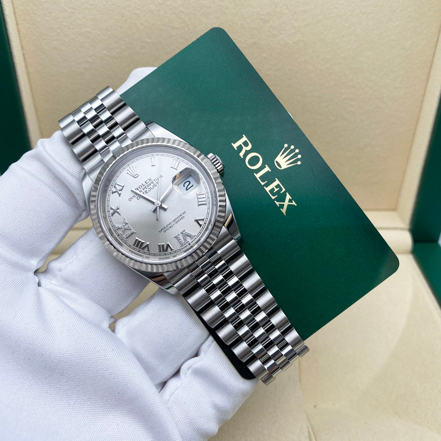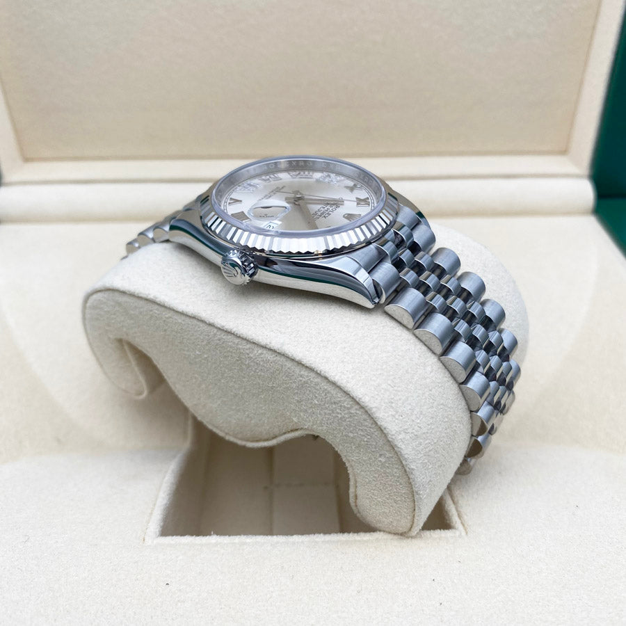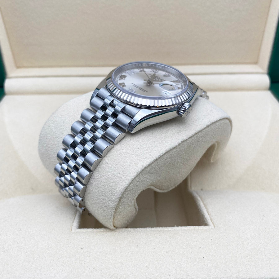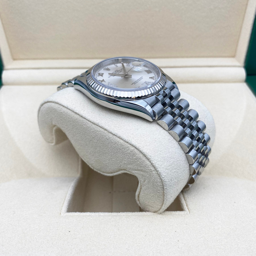 Rolex Datejust 36mm Fluted Bezel Jubilee Bracelet Silver Diamond 6 and 9 Hour Marker Dial