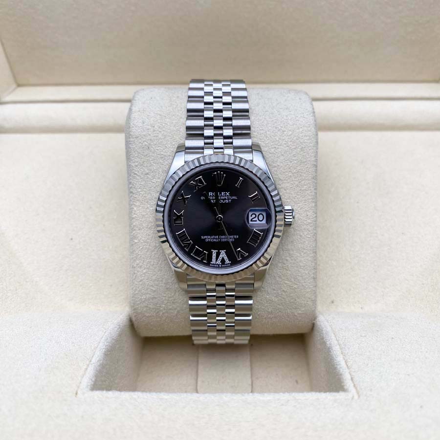 Rolex Datejust Dark Grey Diamond Roman Numeral Dial Fluted Bezel 31mm 278274