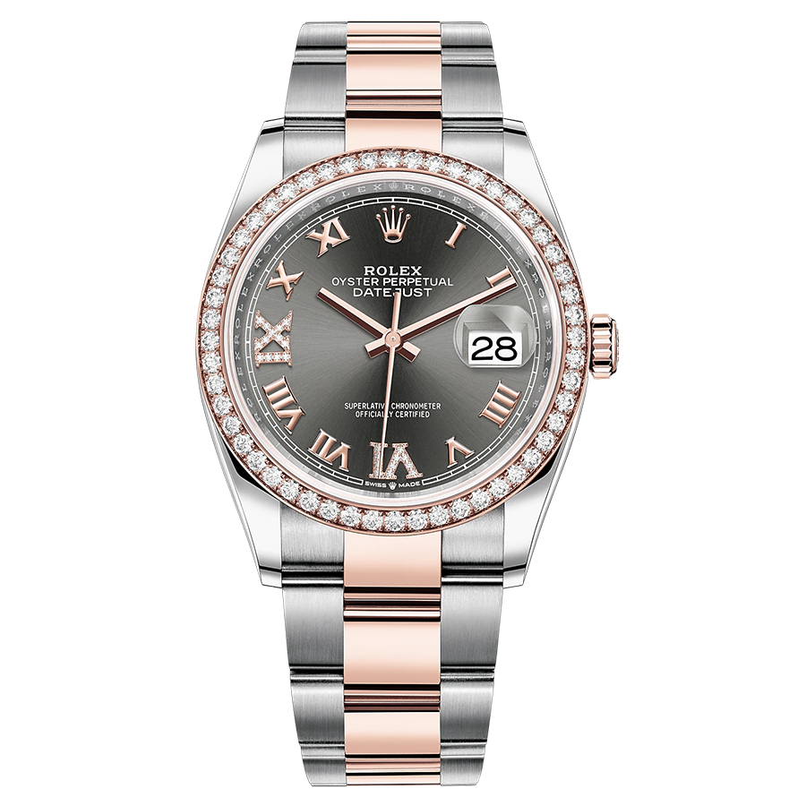 Rolex Datejust Slate Roman Numeral Dial Diamond Bezel 36mm 126281RBR
