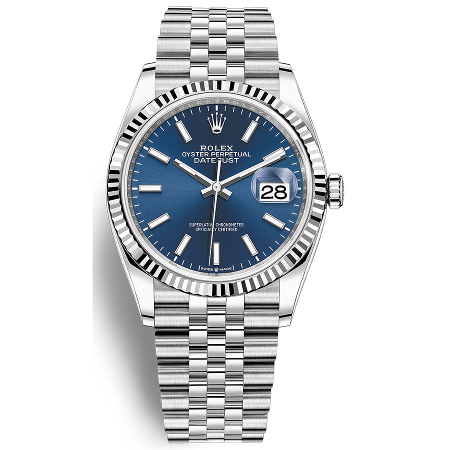 Rolex Datejust Bright Blue Dial Fluted Bezel 36mm 126234