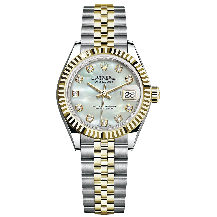 Rolex Lady-Datejust Mother Of Pearl Diamond Dial Fluted Bezel 28mm 279175