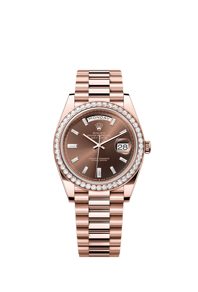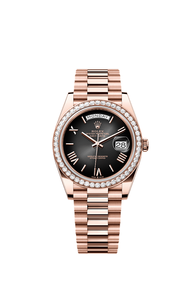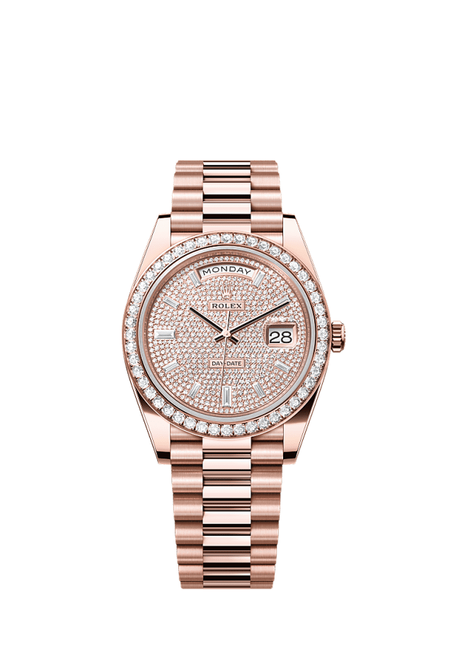 • Rolex Day-Date 40 Oyster, 40 mm, Everose gold and diamonds Reference 228345RBR