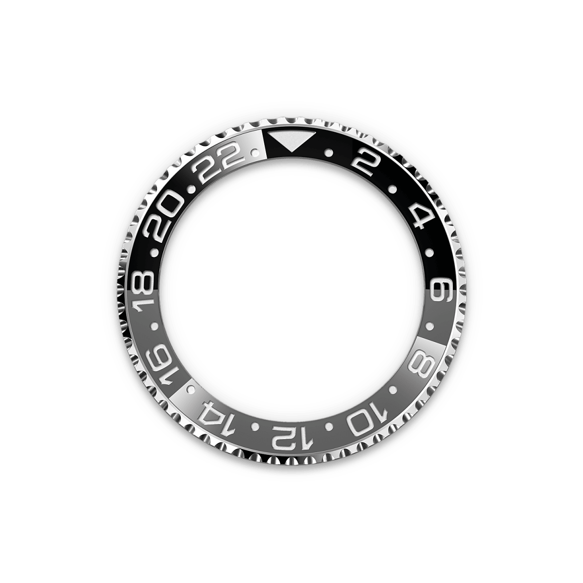 This model features a black dial and a two-colour Cerachrom bezel insert in grey and black ceramic. In addition to conventional hour, minute and seconds hands, the GMT-Master II features an arrow-tipped hand, which circles the dial once every 24 hours, as well as a bidirectional rotatable 24-hour graduated bezel.