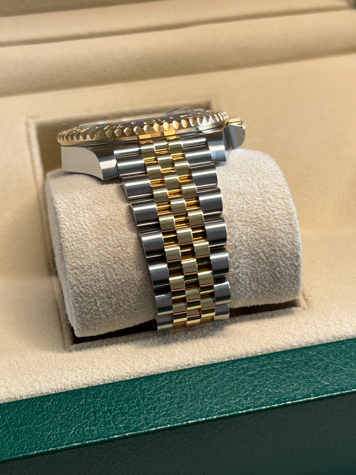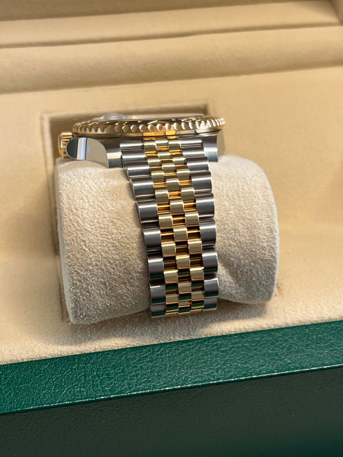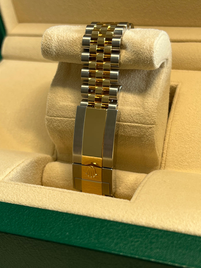 The Jubilee bracelet on this model is equipped with a Rolex-designed and -patented Oysterlock folding safety clasp, which prevents accidental opening. It also features the Easylink comfort extension link, developed by the brand, which allows the bracelet length to be increased by approximately 5 mm. A concealed attachment system ensures seamless visual continuity between the bracelet and case.