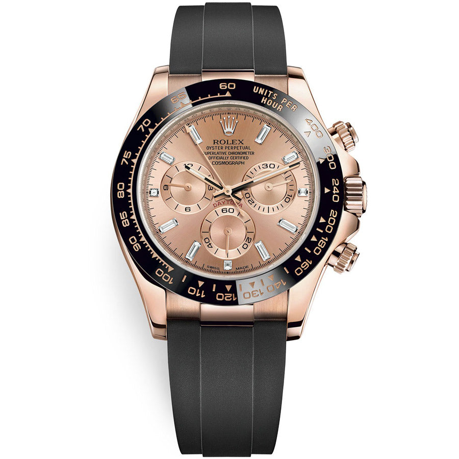 Rolex Daytona 40mm Oyster Flex 116515LN Pink Baguette Diamond Dial Dial