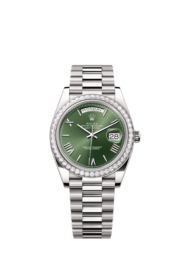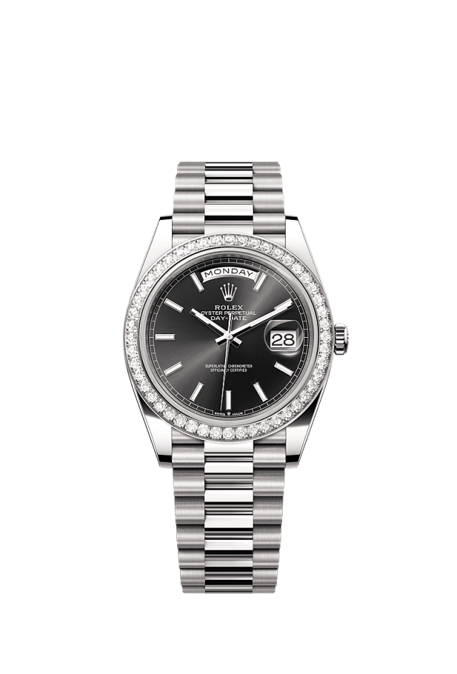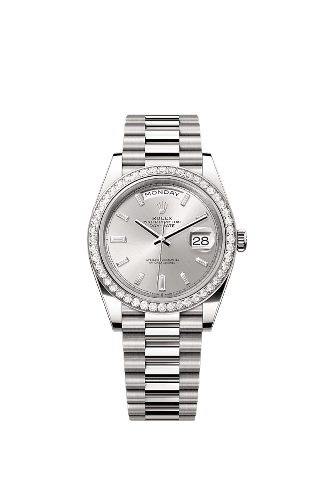 Rolex Day-Date 40 Oyster, 40 mm, white gold and diamonds Reference 228349RBR