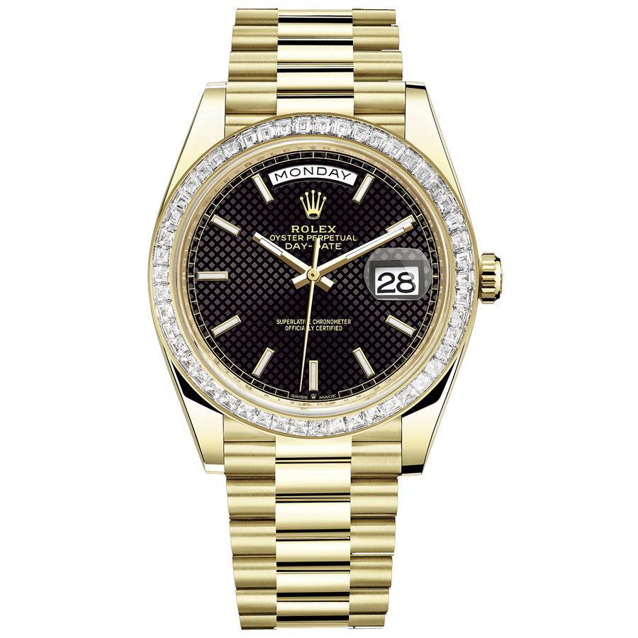 Rolex Day-Date 40 Presidential 228398 Baguette Diamond Bezel Black Dial