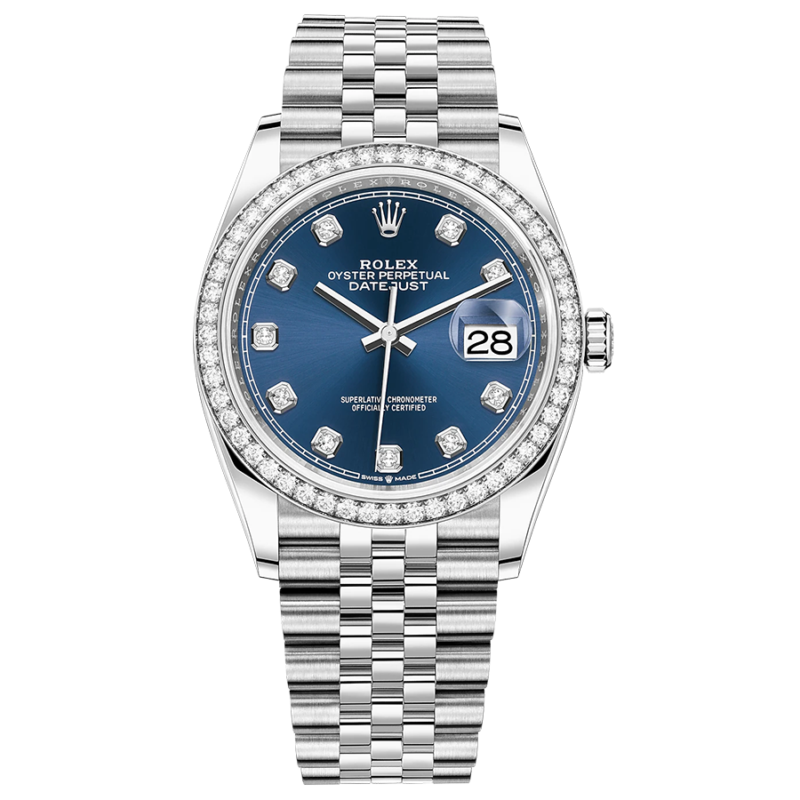 Rolex Datejust Bright Blue Diamond Dial Diamond Bezel 36mm 126284RBR